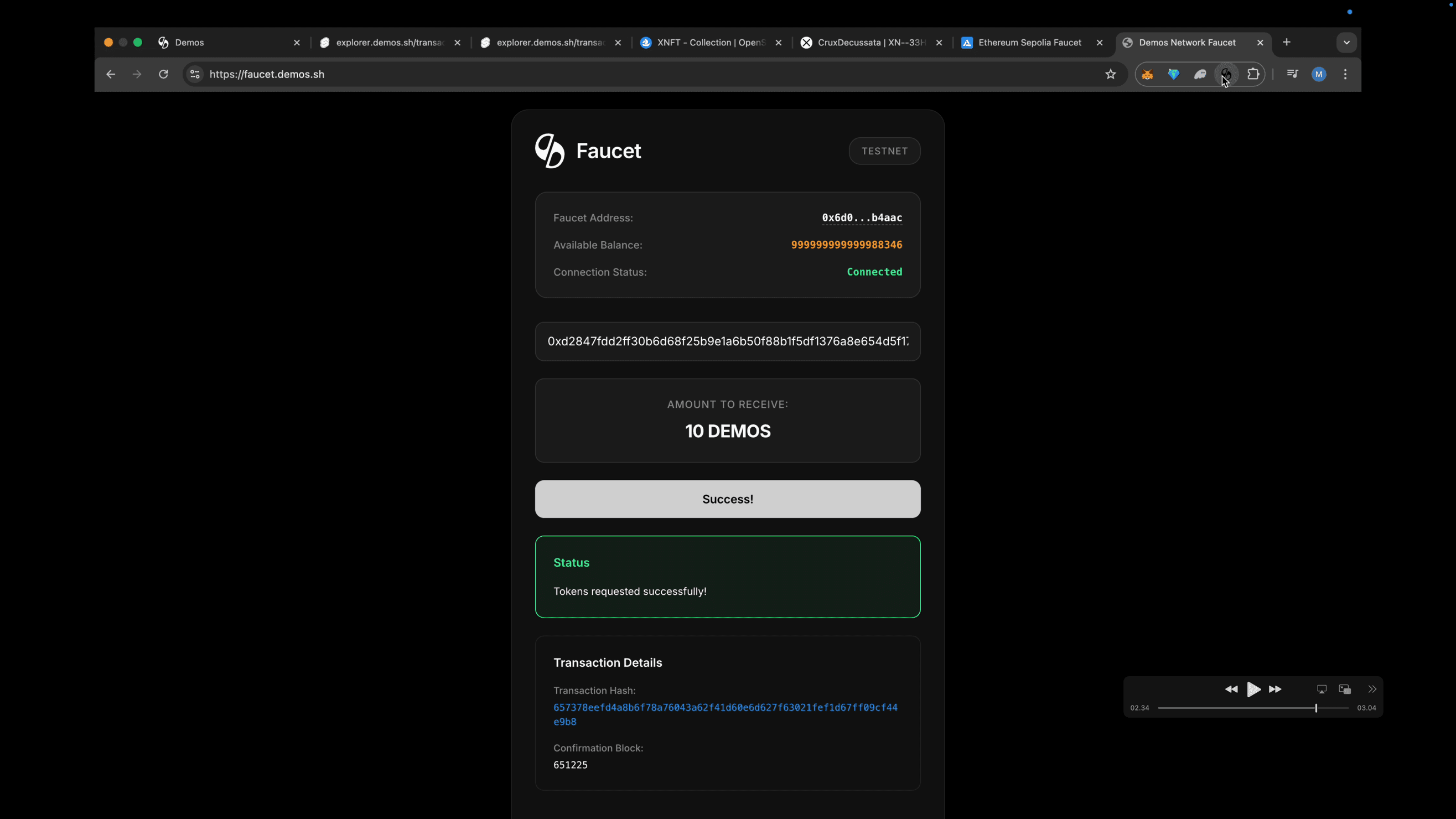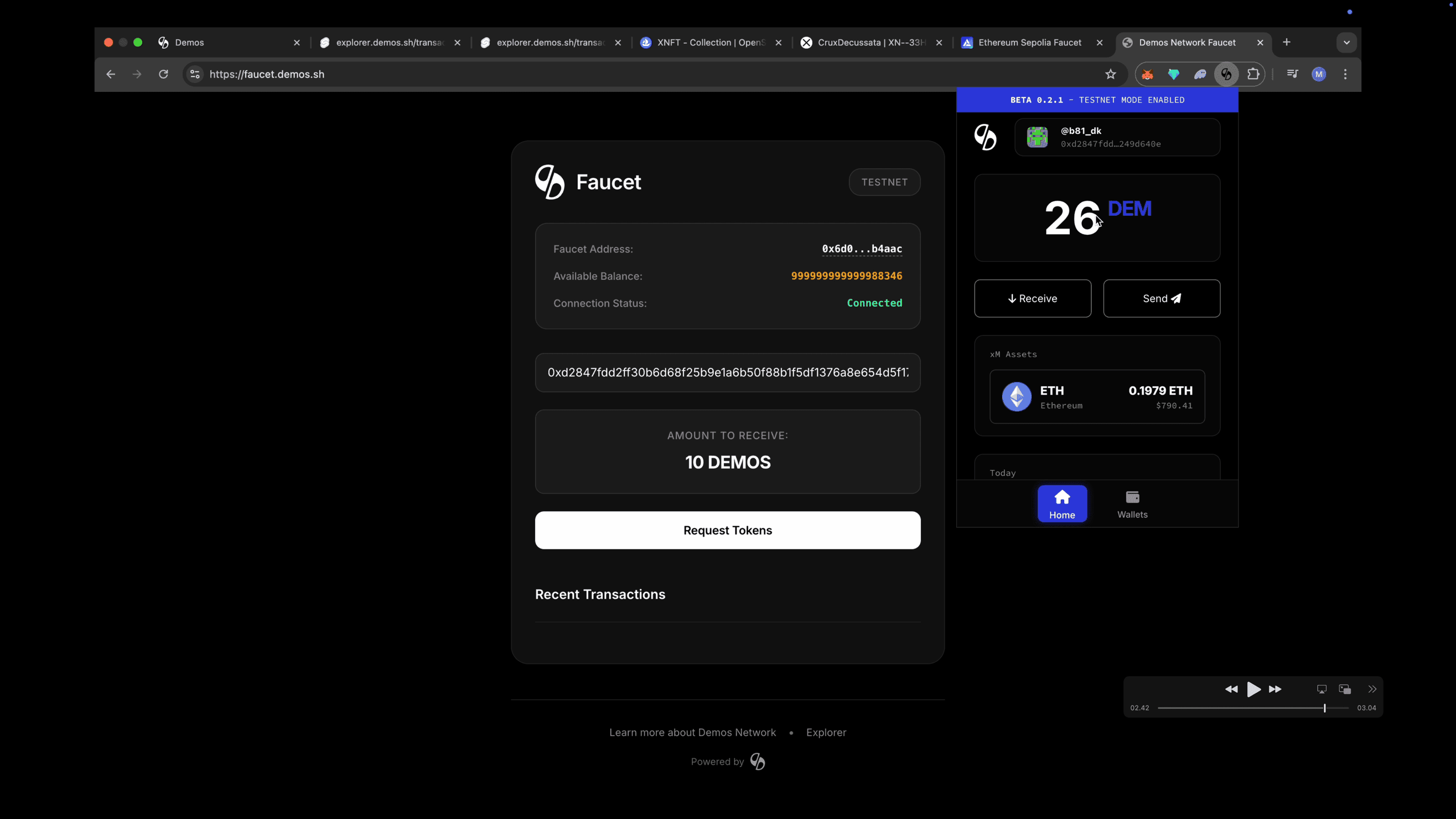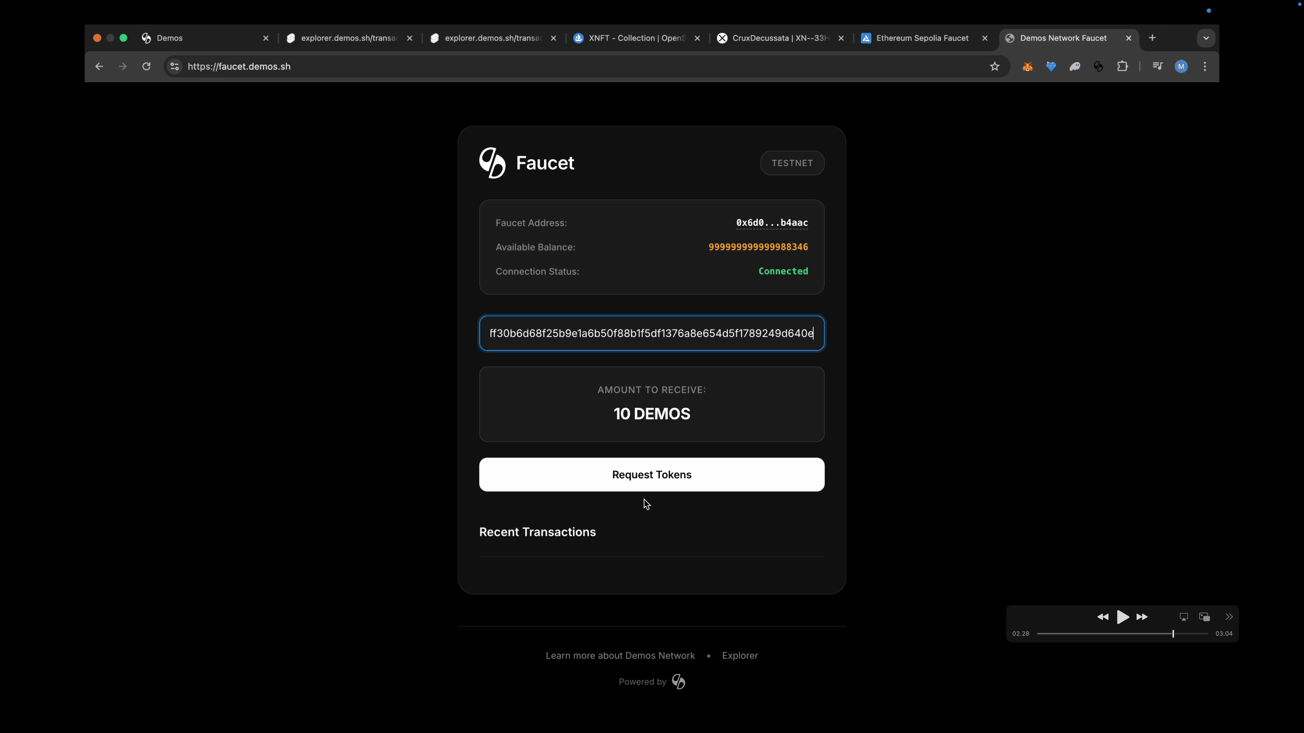 The Demos Network faucet provides free testnet $DEM tokens that you can use to explore and experiment within the Demos ecosystem.