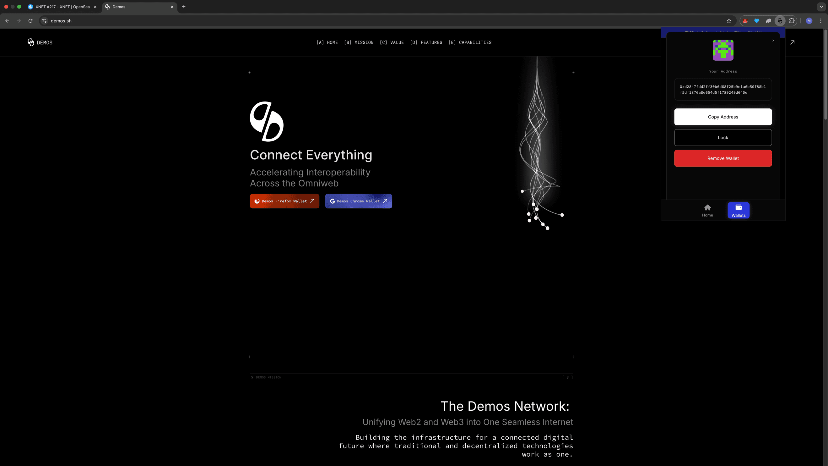Open your Demos Wallet extension in your browser and log in using your secure password.